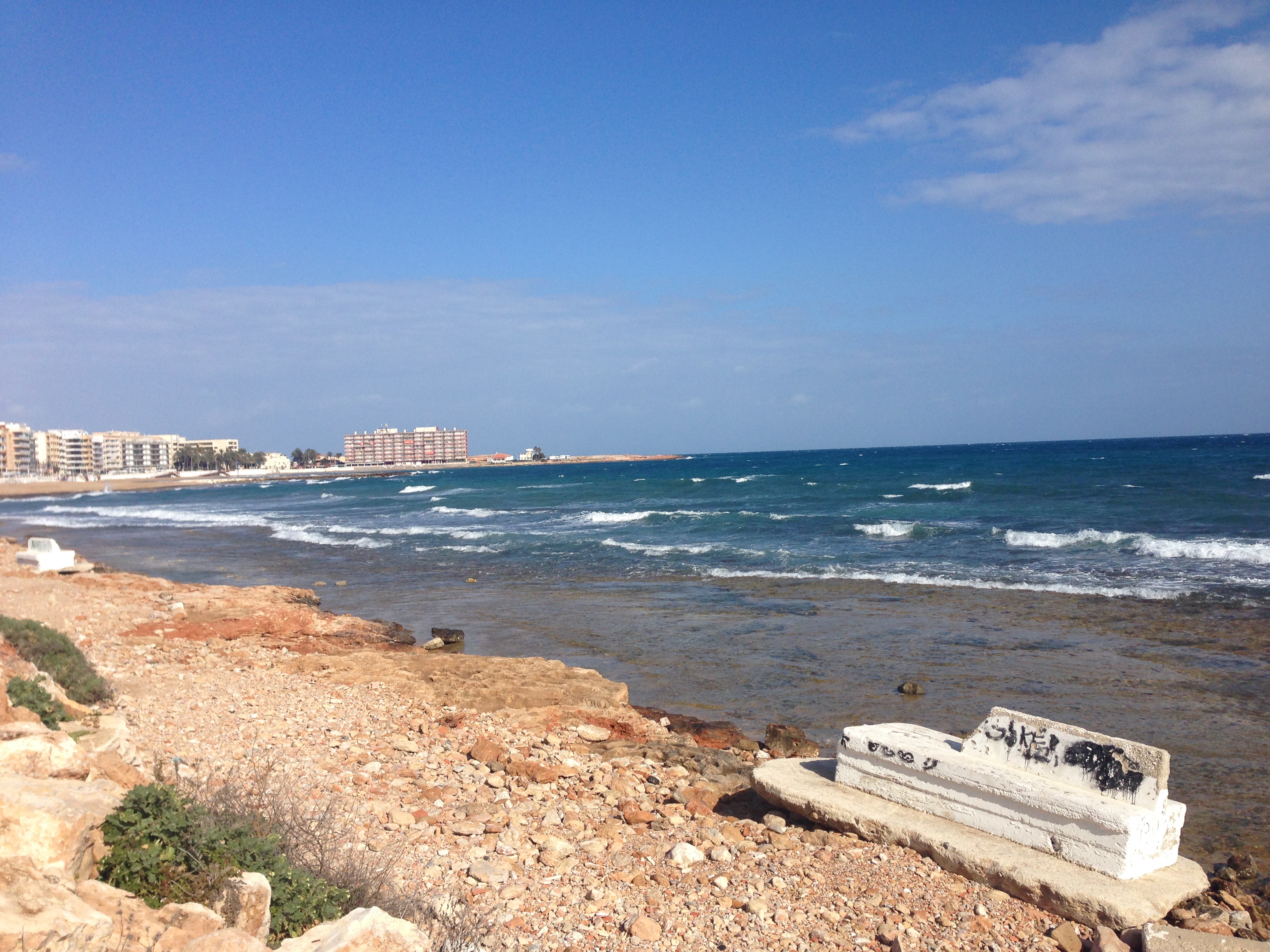 Vi gick ner till Palangrekurvan och sen vidare längs med promenadvägen som går hela vägen bort mot playa La Cura. Solen värmde så gott, så man kände faktiskt inte av blåsten.