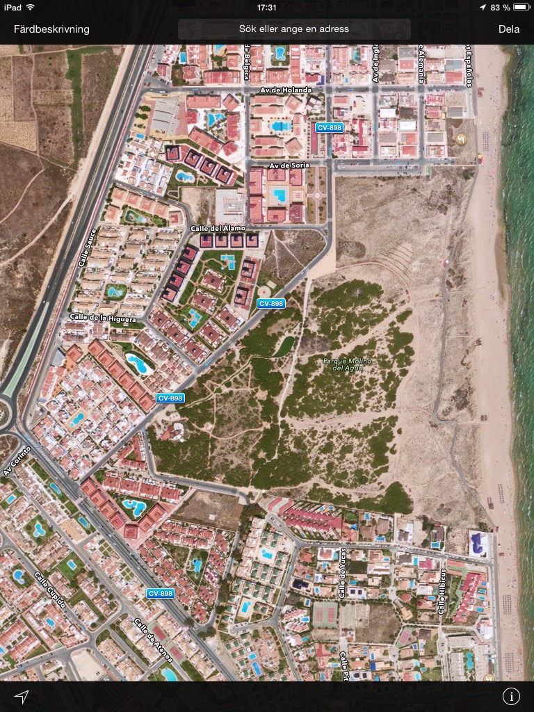 Idag bestämde vi oss för att åka till Pargue del Molino del Agua. Det var ca 10 år sen som vi var där sist, så det skulle bli riktigt spännande att se hur det såg ut där idag. Vi blev glatt överraskade hur mycket som hade gjorts under åren. Kommunen hade t.ex anlagt flera gångvägar i parken, även några som gick över sanddynerna ner mot själva stranden. Det var rent och fräscht överallt och det fanns många bord och bänkar inom området. Perfekt för en paus.