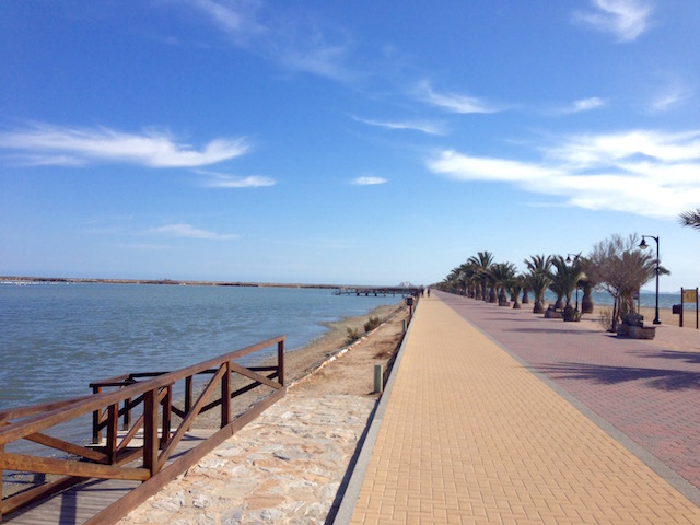 IMG_8053 kopiaSaltsjön till vänster och Mar Menor till höger om promenadvägen.