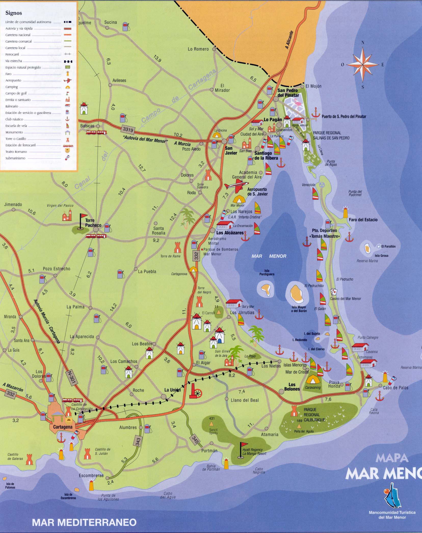 Mar Menor är den största saltvattenlagunen i Europa, med en yta av 170.000 kvadratmeter och med ett maximalt djup på 7 meter. Detta område erbjuder milda vintrar, väldigt lite regn och över 3000 soltimmar per år, vilket ger denna region ett mycket torrt klimat, som WHO klassat som ett av världens bästa. Platsen är en kurort, känd för den lera som används som skönhetsbehandling eller helande behandlingsmetod mot t.ex reumatisk värk och psoriasis.