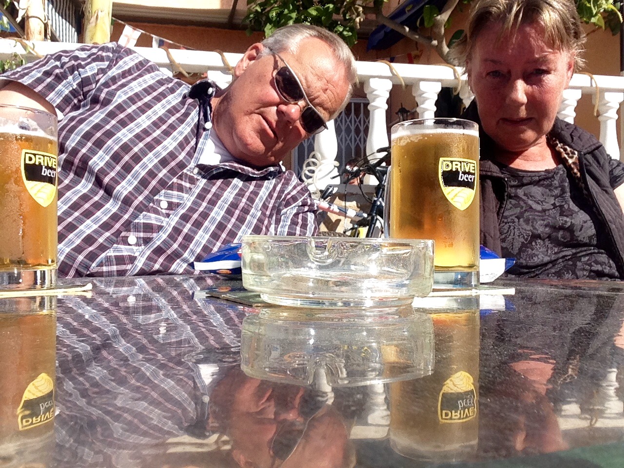 När vi kom hem gick vi till Oly´s och tog en varsin öl. Man kan ju undra vad vi håller på med här?