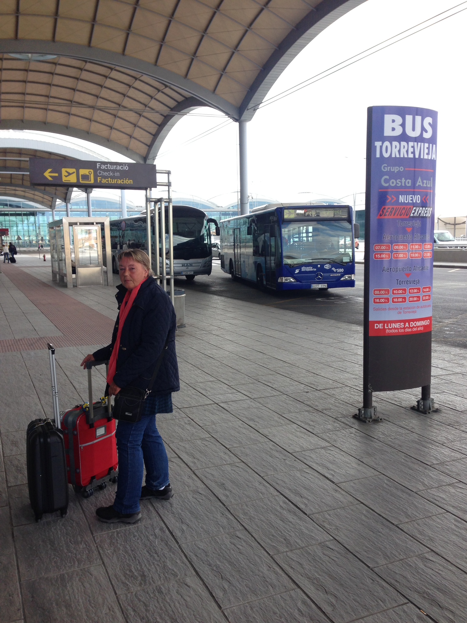Just här vid avgångshallen stannar och avgår flygbussarna till Torrevieja. Avgång till Torrevieja: kl. 8 – 10 – 12 – 14 – 16 – 18 – 20 – 22
