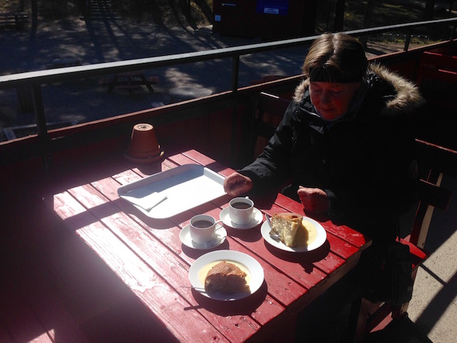 IMG_8494 kopia Här sitter vi och njuter i det vackra vädret med en kopp kaffe. Till kaffet blev det en hembakad äppelkaka och en sockerkaka med vaniljsås.