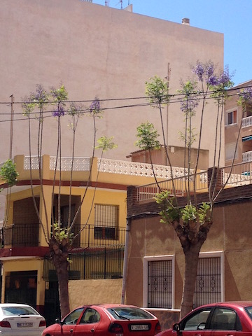 Ja alla träden längs med båda sidorna av Caballero de Rodas var hårt beskurna men riktigt vackert blålila. Vi har också haft en innedag idag, hade ingen lust att gå ut.