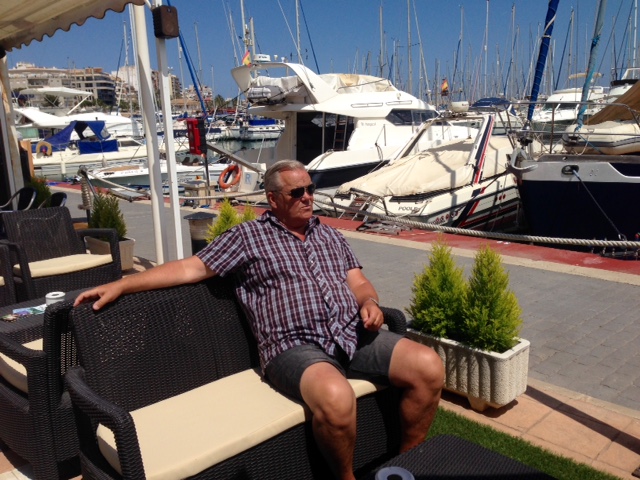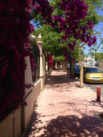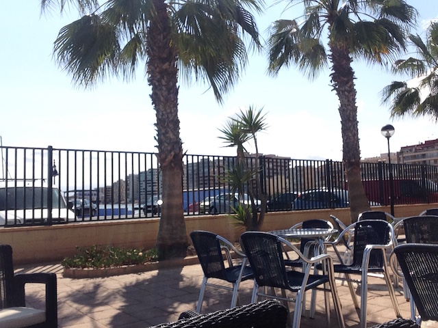 Nej vi gick ner till båtvarvet och Puerto Deportivo Marina International (med dom färgglada husen) som ligger en bit bakom busstationen vid Eras del Sal. Ja äppelkakan var tydligen väldigt god.