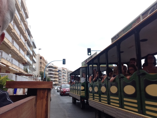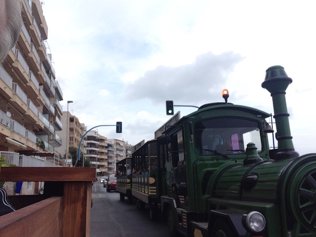 Vi hade precis satt oss vid borden när turisttåget tuffade förbi.