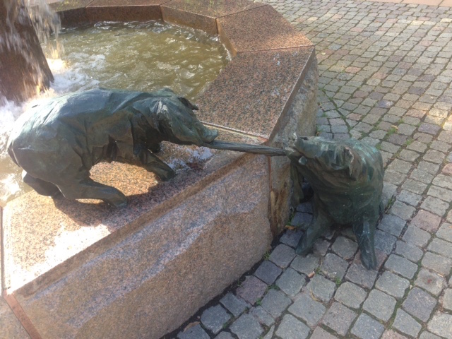 IMG_9705Carl G Torstenssons skulptur ” Grisbrunnen” har gett upphov till det nya namnet på torget, nämligen Gristorget.