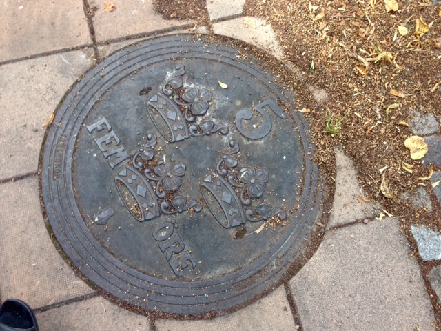 Jag har inte direkt lagt märke till det här brunnslocket trots att jag flera gånger passerat Uppsalas auktionskammare. Men jag har haft barnbarnen att titta på. Men nästa gång ska jag se upp. Snarare ner.