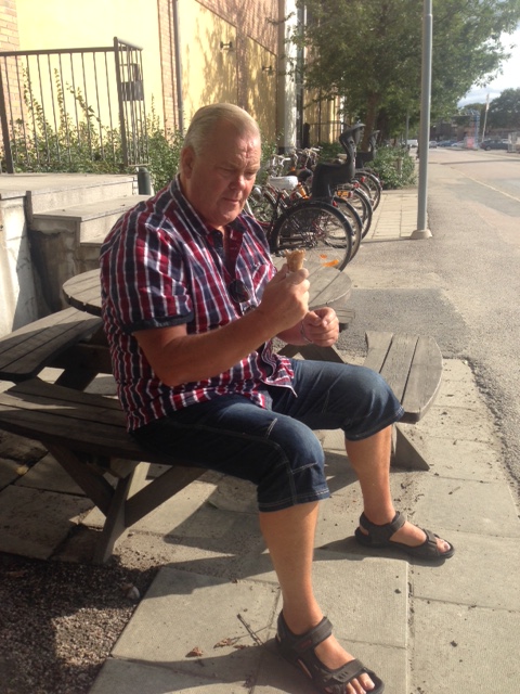 Såg gott ut med en glass i solen. Tack för info om bilbarnstolarna. Ska genast informera sonen.