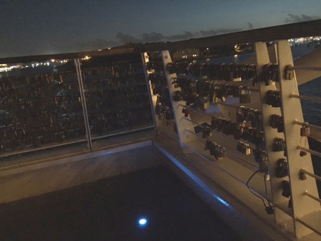 Vi tog hissen upp till en liten utsiktsbalkong där man hade en tjusig utsikt över vattnet och över till gamla stan.