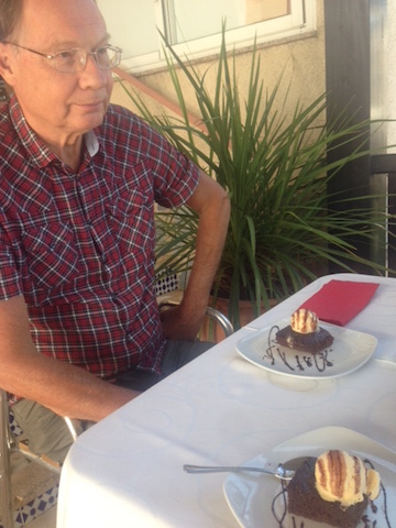 Jag har bara varit inne i stan och ätit det ni åt sånär som på efterrätten som jag brukar avstå för att jag är för mätt.