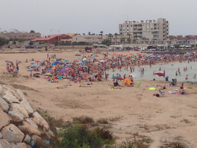 Hotellet ligger ju lite ”off” så det är ju kanske inte ett förstaval om man vill ha nära till stan. På den undre bilden ser det bra trångt ut….Verkar vara högsäsong. Men på själva La Matastranden brukar det ju vara gott om plats och ju längre bort mot Guardamar man kommer ju mindre folk….