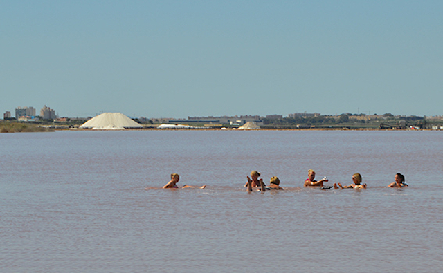 Mange hadde tatt turen til Saltsjøen i Torrevieja onsdag.