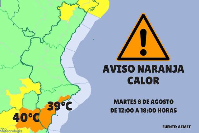 Den statliga La Agencia Estatal de Meteorología har just höjt den till orange i morgon tisdag.Temperaturen väntas vara nära 40º c i vårt område, även om vinden för maritime kommer att sänka dem snabbt. I torrevieja, 35º c maximum. På onsdag blir det svalare och risk för regn.