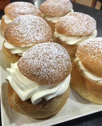 Nu blev jag sugen på semlor, har inte ätit någon i år… Konstigt att man blir sugen när vi har smarriga desserter varje dag😉.