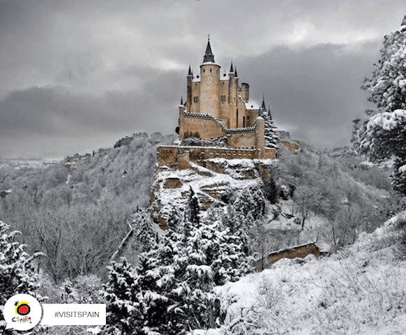 Det kan snöa i Spanien också! Bilden är från världsarvsstaden Segovia.