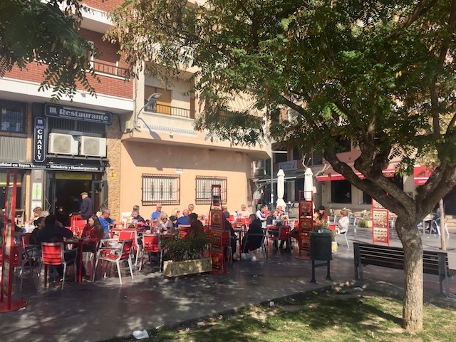 Vi brukar ofta stanna till och fika på det mysiga torget i Montesinos.