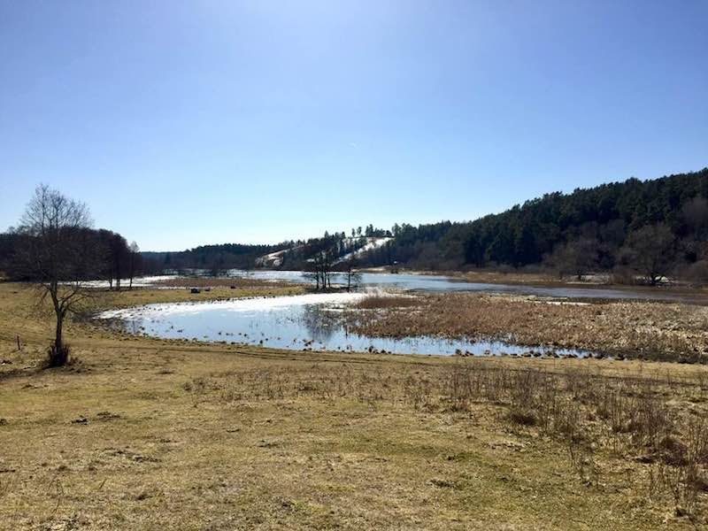 Oj vad med vatten det är i Fyrisån nu nedanför slalombacken i Sunnersta.