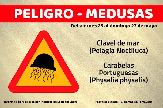 Den här helgen är fortfarande faran stor för närvaron av maneter i havet och på våra stränder.    (Proyecto Mastral)