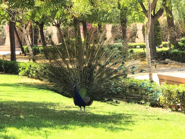 I parken träffade vi inte bara på tuppar & höns, utan även denna vackra påfågel….
