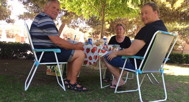Först satt vi i skuggan, men myggen ville också vara med, så vi flyttade ut i solen