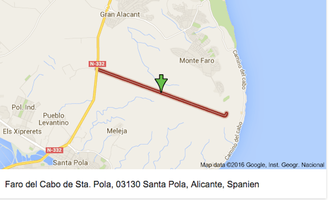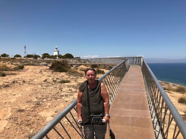 Ja det är bara att svänga av där när man kommer från Torrevieja. Man åker hela vägen tills den tar slut vid muren och infarten/grinden till fyren. Där finns det plats att parkera. sen går man på höger sida om infarten/muren en bit bort mot skywalken. Men när man åker tillbaka får man svänga höger ut på N332:an mot Alicante och sen vända tillbaka till Torre vid något lämpligt tillfälle. Tag med vatten, det behövs när det är så här varmt! Kram!