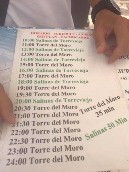 Biljetterna kan man köpa vid den fasta marknaden, (precis på samma ställe där man köper biljetter till Torre del Moro -turen), ungefär lite snett mittemot fontän/ vattenfallet vid Plaza de Waldo Calero.