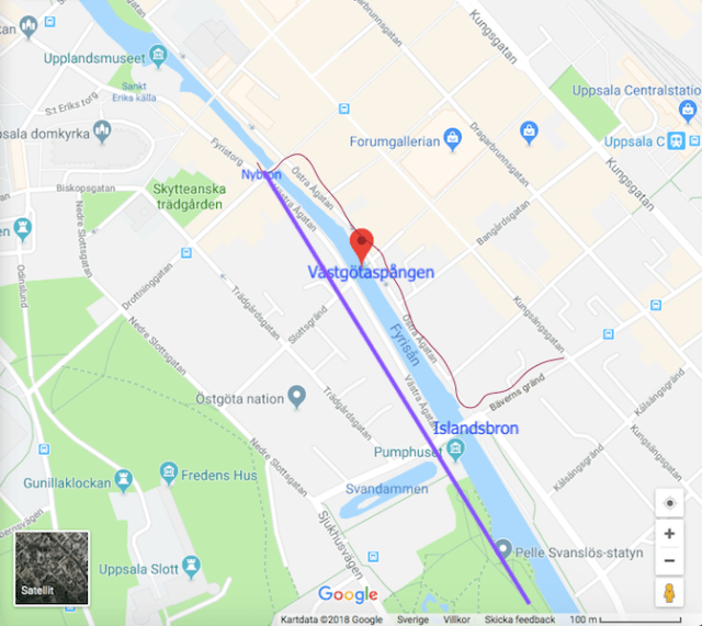 Vi promenerade vidare längs med Fyrisån och Västra Ågatan bort mot Islandsbron….