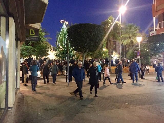 Men i Torrevieja började adventsfirandet med en mässa i kyrkan, sen blev det en riktig folkfest när ca 1000 personer samlades på torget Plaza de la Constitución utanför kyrkan, för att vara med när den småländska granen tändes. Samtidigt kunde man kolla in julkrubban