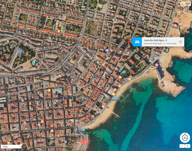 Hans galleri ligger på Avenida Roentgen 4 i urbanisation Aldea del Mar (se kartan nedan)